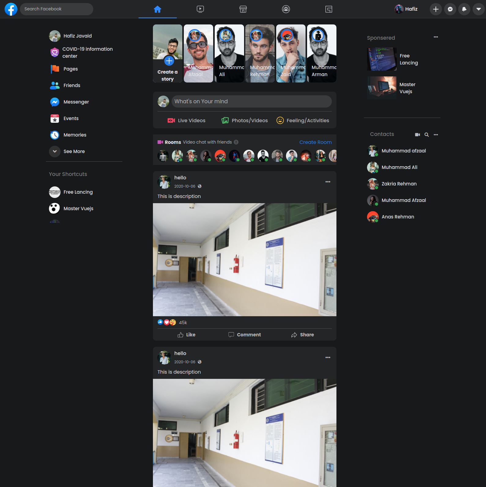 December 25, 2019This is UI clone of facebook web including dark mode and firebase authentication.