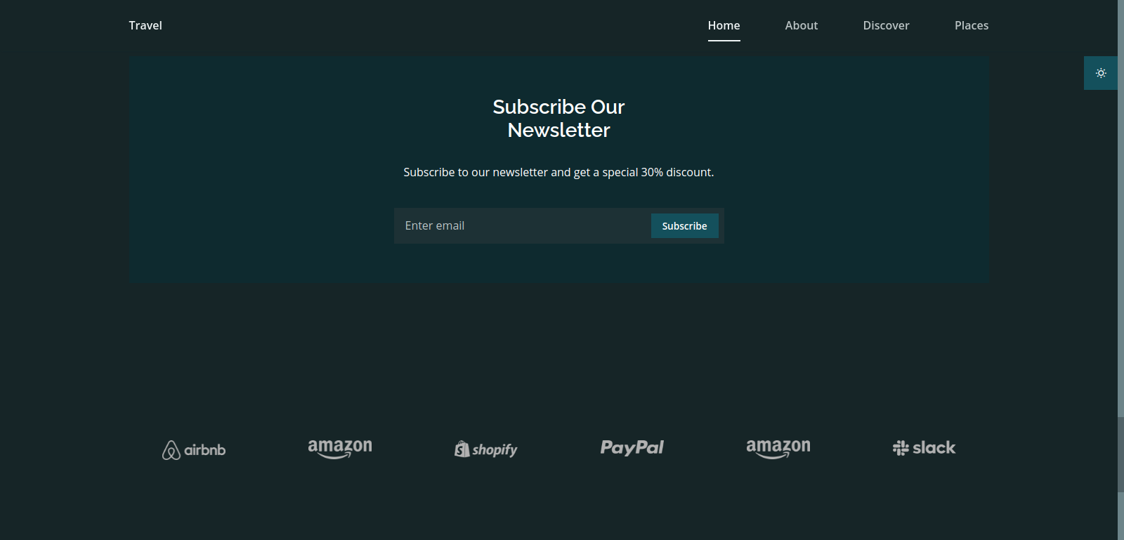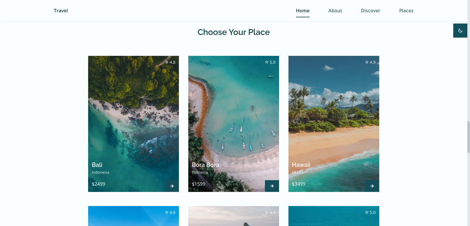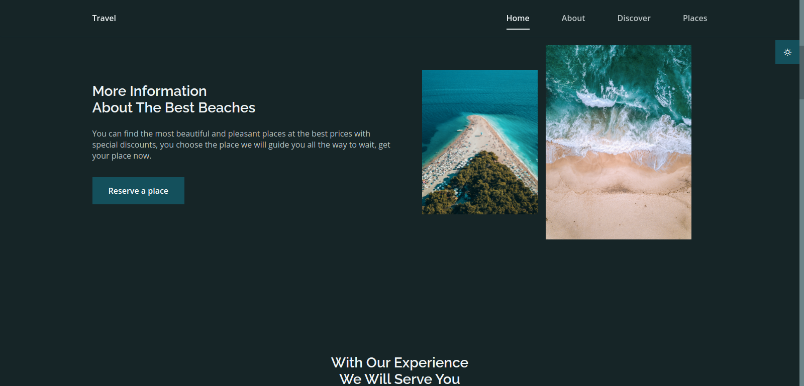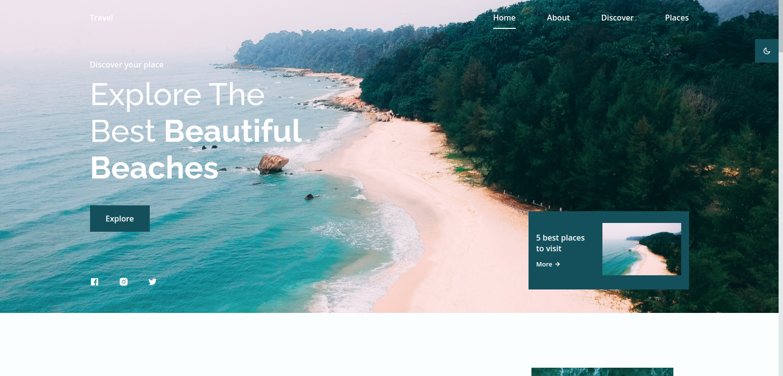 June 26, 2021In this website, I convert the simple travel website repository to Reactjs. It has light and dark themes